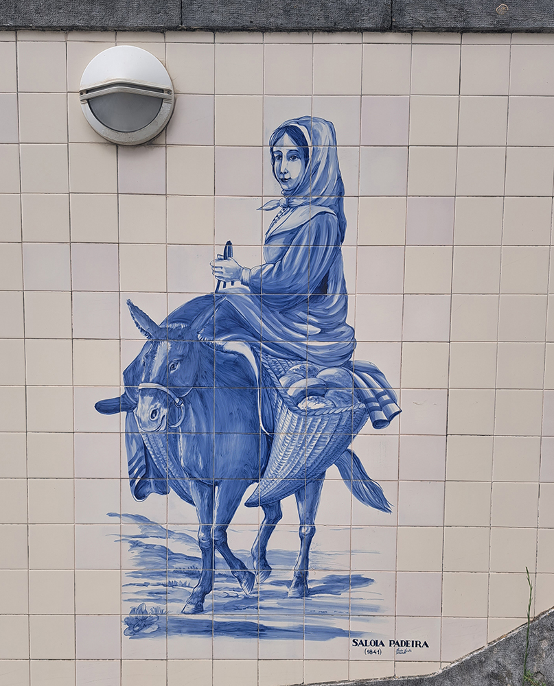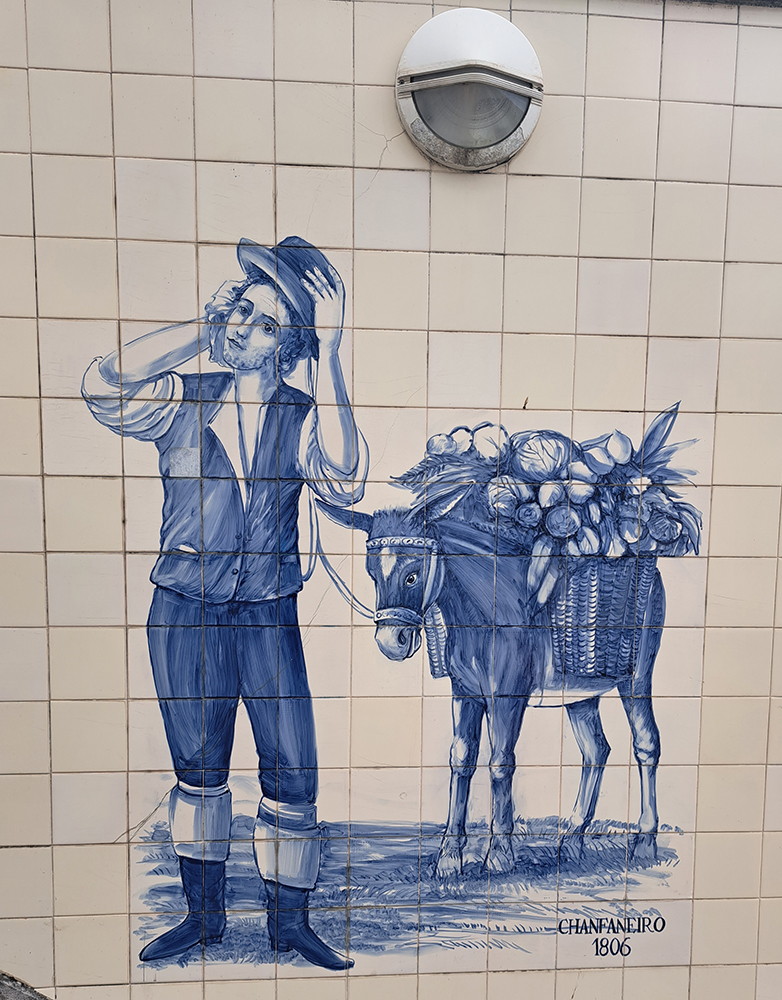 Пока мы ходили в ближайший «Лидл» за едой после приезда, наблюдали азулежу прямо на нашей улице. Дорога к бывшему рынку, который теперь супермаркет, украшена чередой симпатичных картинок на тему.