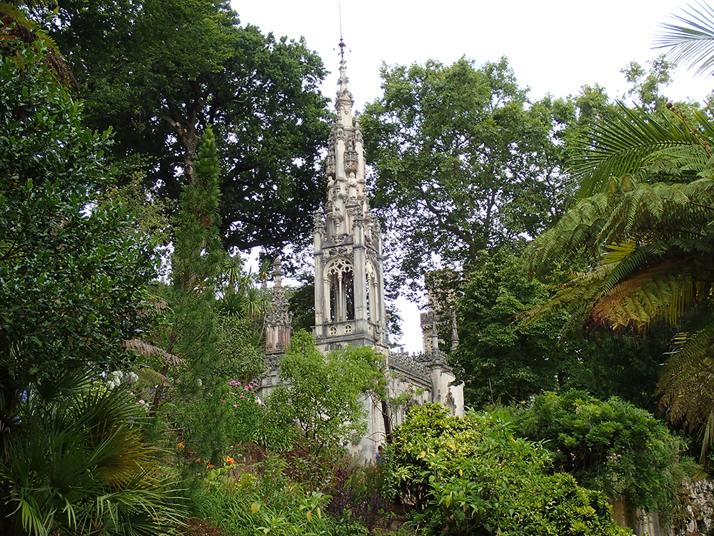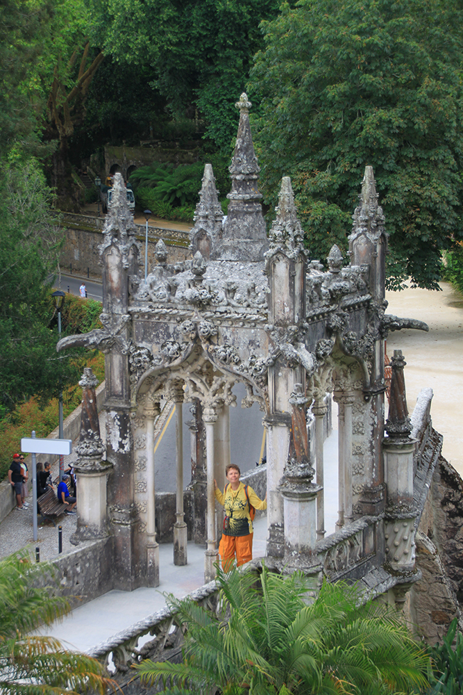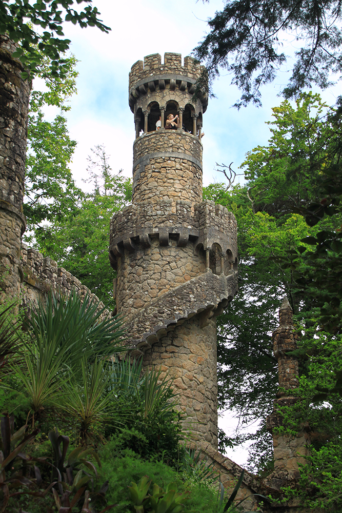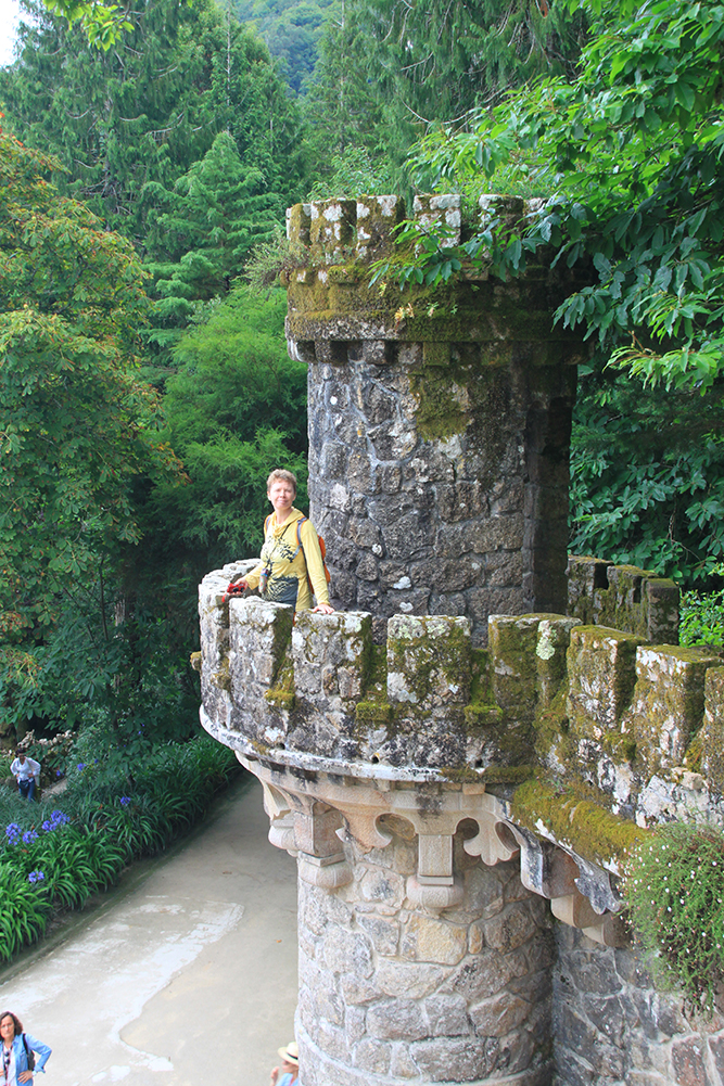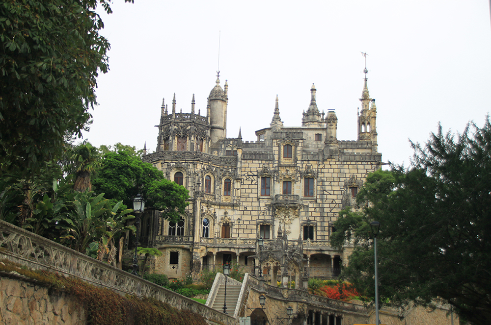Мы сперва надеялись на прояснение, поэтому во дворец Пена сразу не пошли, а отправились в Кинта да Регалейра. Вход стоит 12 евро с человека, скидка по Лиссабонской карте 20 процентов. Облачность не мешает осматривать здешний дворец и парк, даже добавляет колорита.