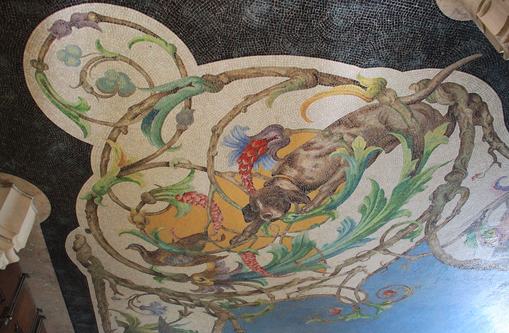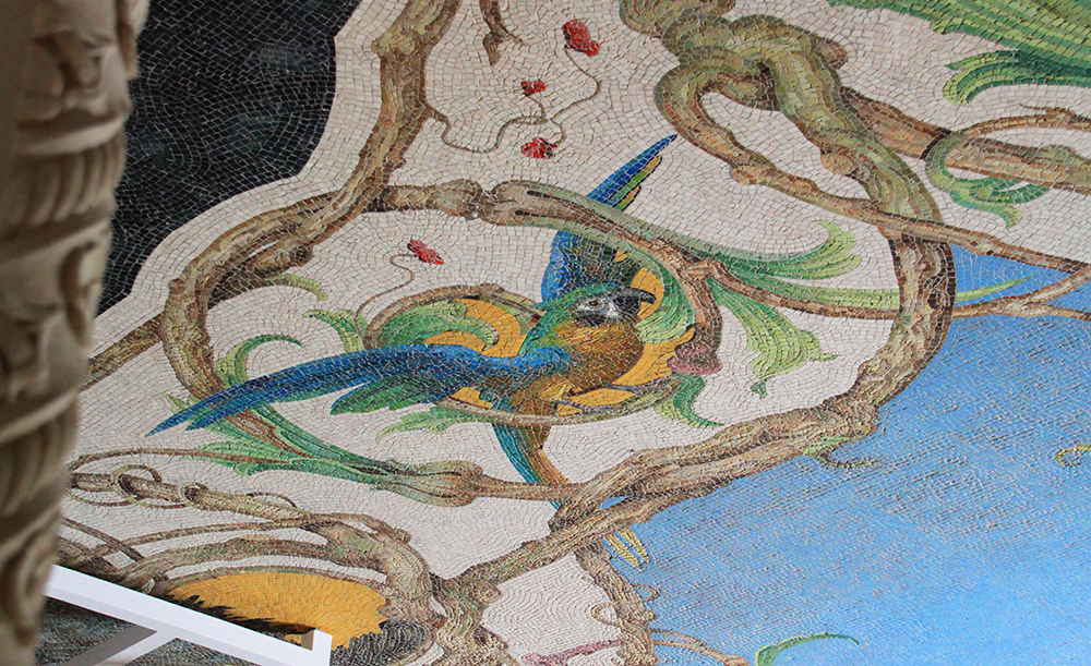 Во дворце красивые интерьеры и вот такой роскошный мозаичный пол.