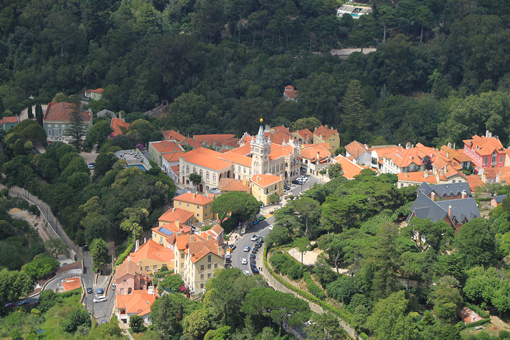 Замок сам по себе симпатичный, и еще мы надеялись увидеть оттуда Пену. Получилось так себе, вот это лучший кадр.
