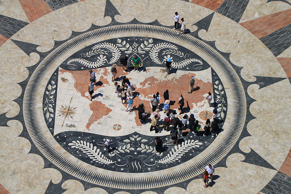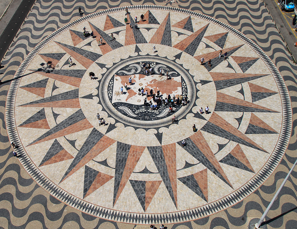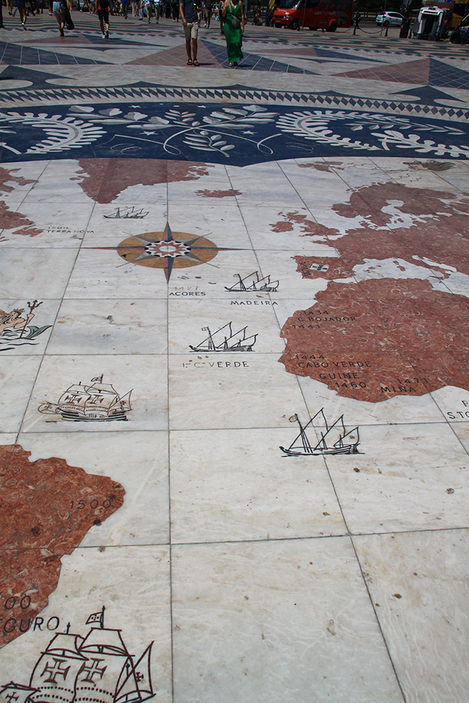 Это каменная мозаика. Здесь обозначены все Великие географические открытия, сделанные португальцами. Все места, где кораблики, отмечено, в каком году что открыли.