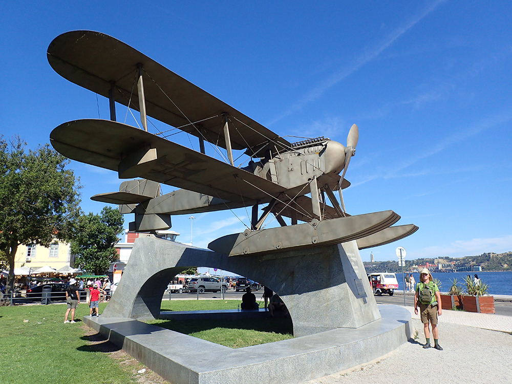 А это памятник гидроплану, который сто лет назад повторил путь в Америку по воздуху.