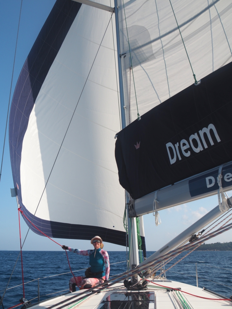 Выйдя в море, довольно быстро мы подняли паруса. А заодно нашли, как включать музыку и выводить ее на колонки в кокпит. Стало совсем хорошо.