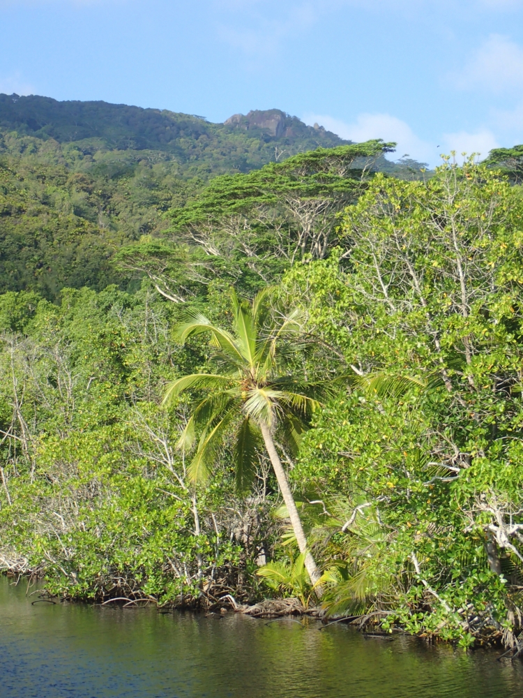 Пальмы растут прямо в воде и они тут довольно низкие.