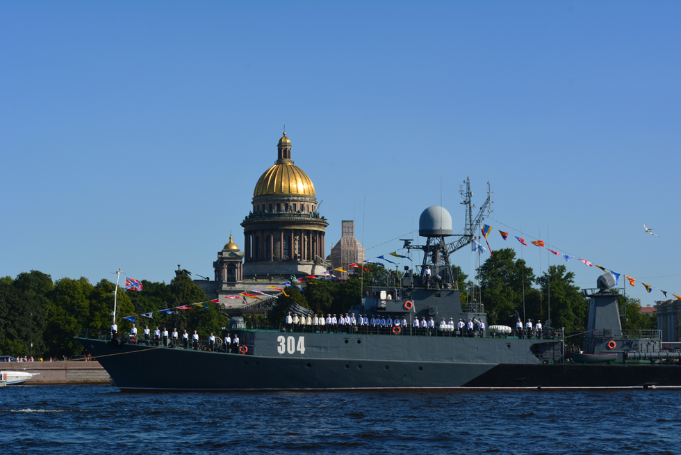 Во второй половине дня мы катались по рекам и каналам Питера, и нам очень повезло: наш катер вышел в Неву, а там была репетиция ко дню военно-морского флота. Так мы еще и кораблики посмотрели, и подводную лодку, и их нарядные экипажи.