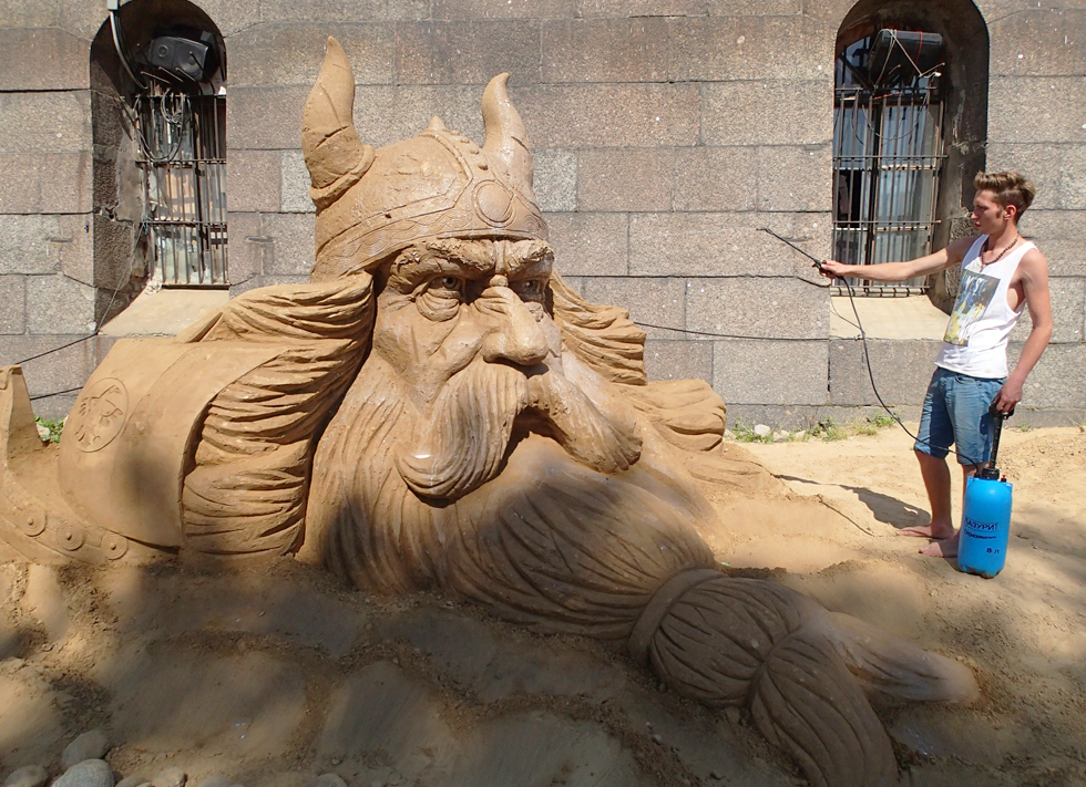 Не удержались и зашли на выставку песчаных скульптур на пляже. В былые годы она была бесплатная, сейчас за вход хотят 300 р, что как-то многовато. Но все равно они забавные.