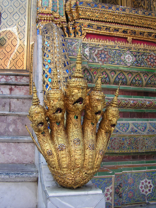 Перила лестниц делают в виде змеи, а внизу многие ее головы. Быть одноголовой змеей в Тайланде непристижно.