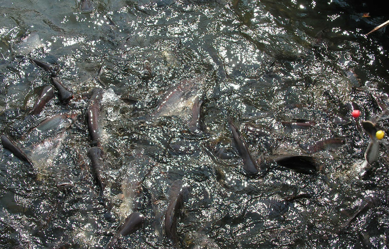 Разноцветные шарики рыбьего попкорна на фотографии имеются. Даже страшно немного падать в такую реку - вдруг сомы и упавшего сочтут попкорном?