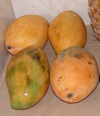 В спелом виде они ярко желтые. Не покупайте ту бледную немочь, которая иногда продается в московских супермаркетах под видом тайских манго.