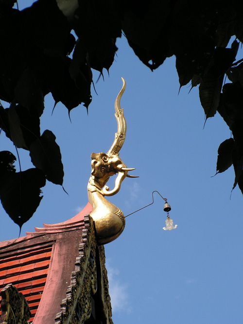 Вообще-то на коньке крыши дракон сидит. А тут посадили слоника: