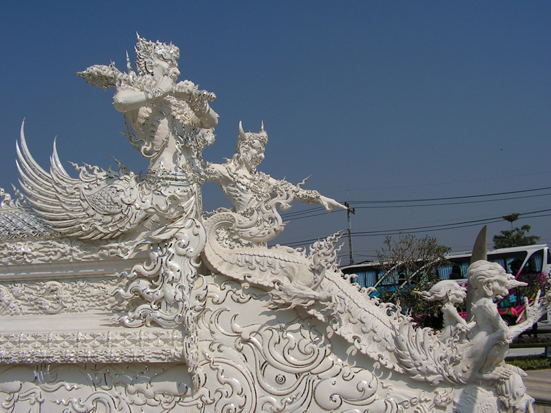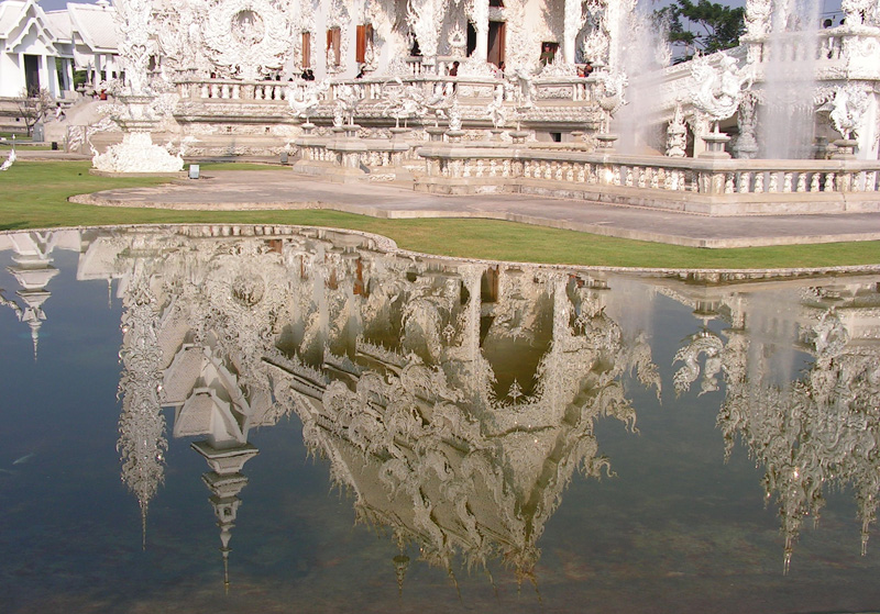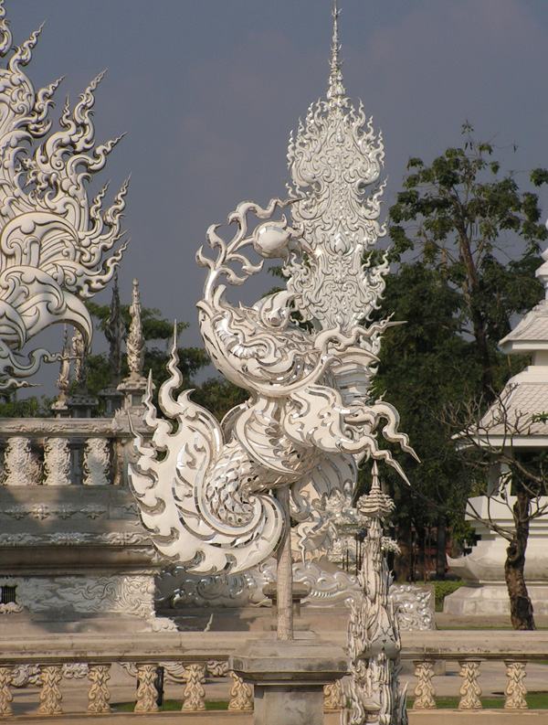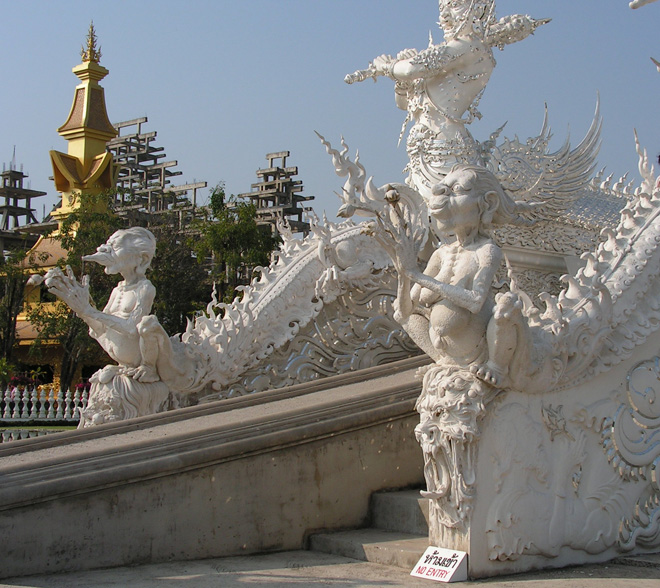 Ронг Кхун пока не достроен, но основное здание снаружи уже закончено. Будет еще два раза по столько же красоты. Пока мы на него смотрим, его строят и расписывают изнутри.
