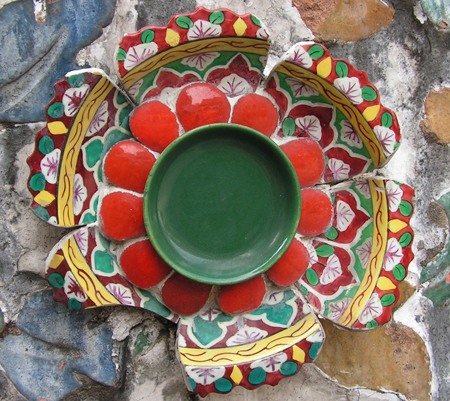 Тин, увидев количество разбитых китайских сервизов, которыми украшен храм, предположила, что так тайцы за что-то отомстили китайцам. За что именно, для нас остается загадкой, но тарелочки вот они: