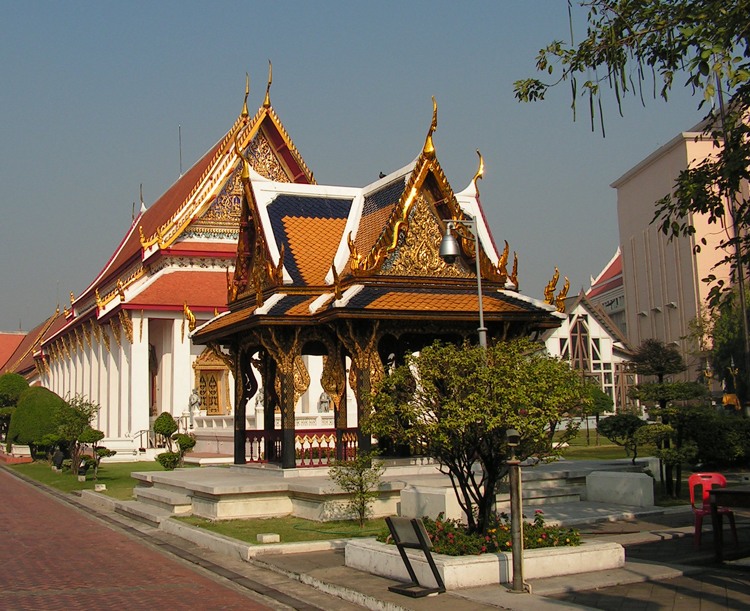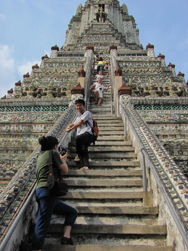 На храм можно взобраться и обозреть исторический центр Бангкока. Лестница удобная, но крутая: