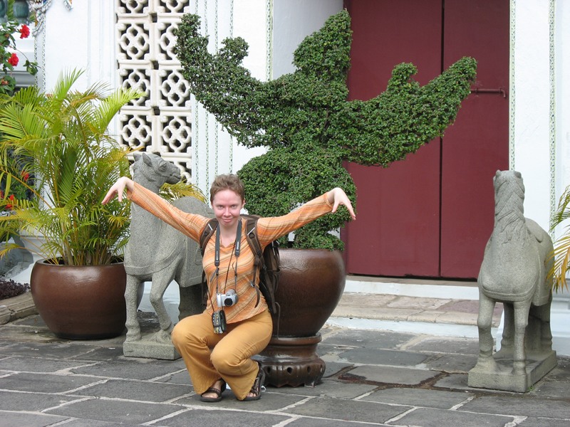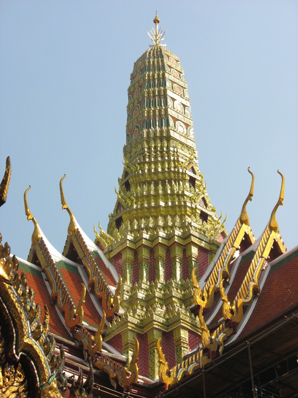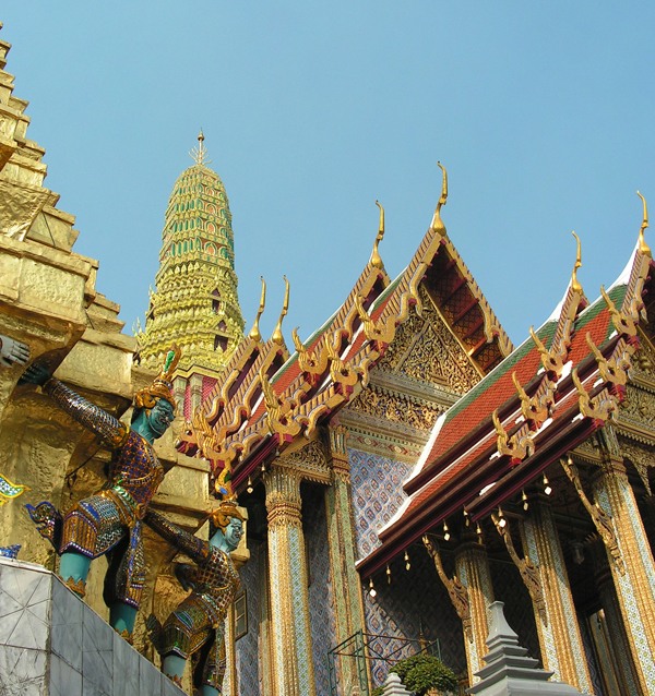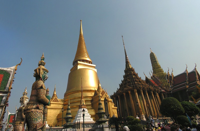 В Королевском дворце бывает всякий турист, приехавший в Тай. Распоследний паттайский пакетник будет вытащен своей турфирмой из автобуса и запущен на часовую прогулку по тайским теремкам. Поэтому народу там много. Но я эти теремки все равно люблю. К тому же с прошлого года я научилась клеить панорамы, а это умение при съемке внутри стен очень пригодилось.