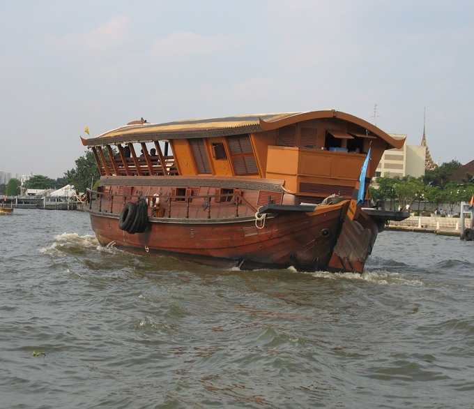 Переправляясь через реку Чао Прая на катере, видели такую посудину: