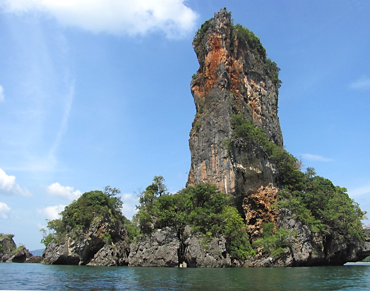 Где-то в заливе Пхангнга, севернее, ближе к острову Пхукет стоит остров Khao Phing Kan, в просторечии называемый скалой Джеймса Бонда. Там снимали один из фильмов и я сперва рвалась на этот остров посмотреть. Но знающие люди сказали мне - таких скал в Краби десятки, а островов в заливе - сотни, нет смысла куда-то дальше ехать.