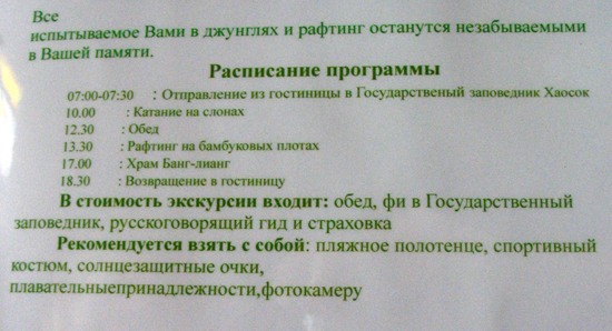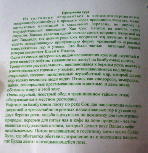 Рассматривая вечером в Ао Нанге програмки с другими экскурсиями, мы наткнулись вот на этот текст. Он настолько шедеврален, что привожу его целиком: