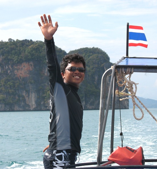 После возвращения на пляж мы вскорости погрузились на свою лодку, чтобы плыть обратно. Перед отправлением лодку аккуратно провели в лагуну, для тех, кто поленился грести в каяках. Так что мы ее увидели еще раз: