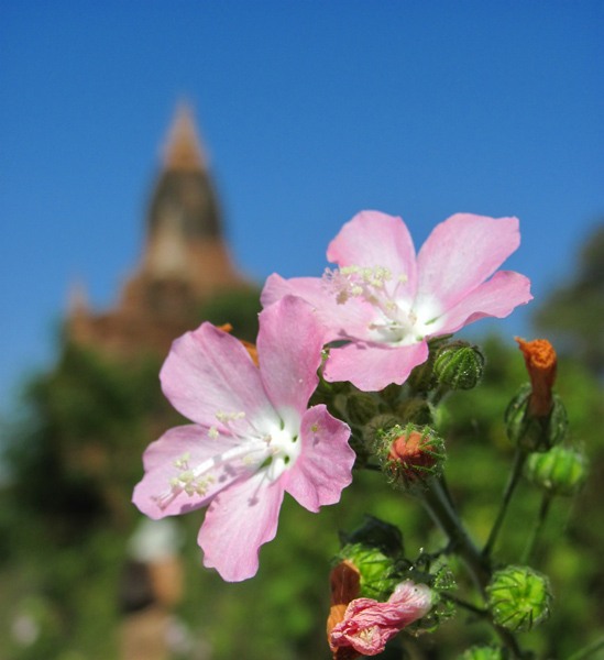Бирманский цветок на фоне пагоды: