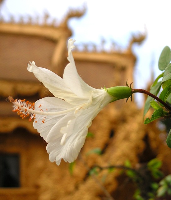 Гибискус на фоне золотого сортирного комплекса. Ронг Кхун: