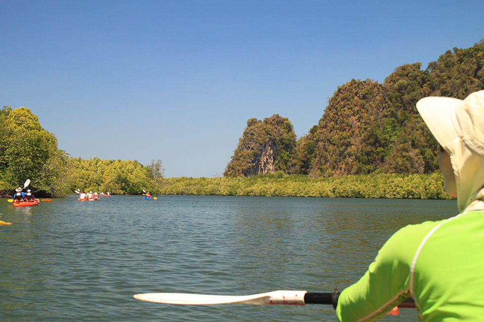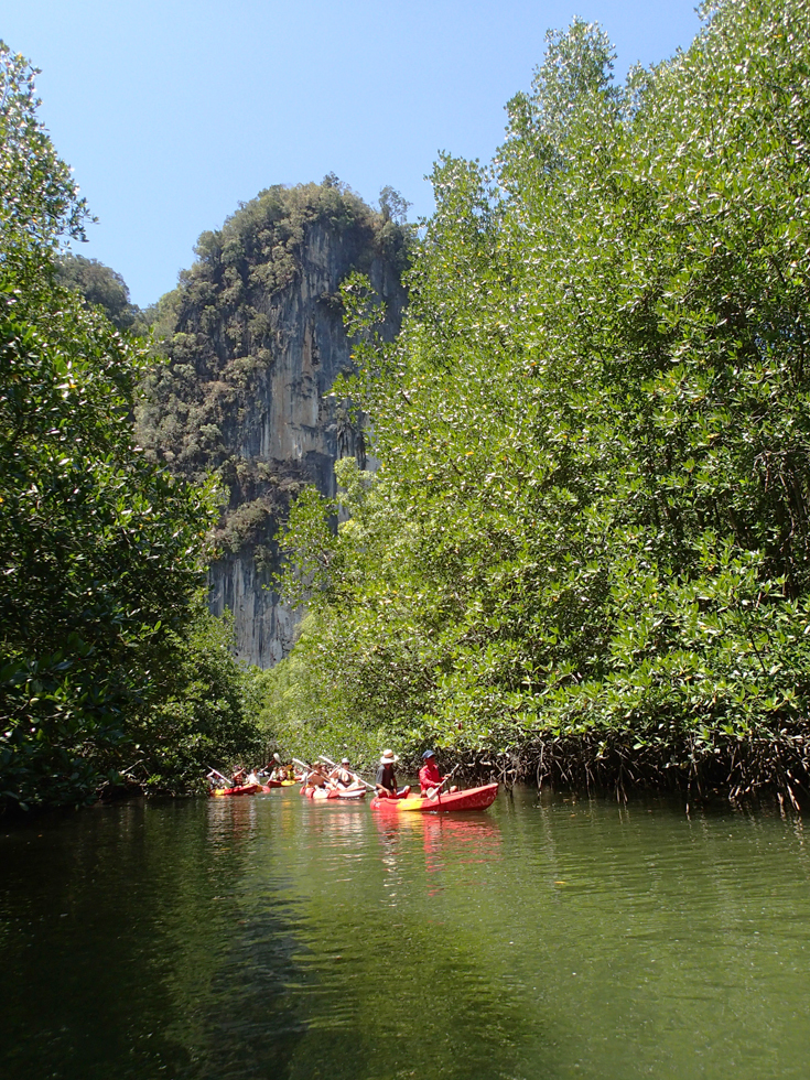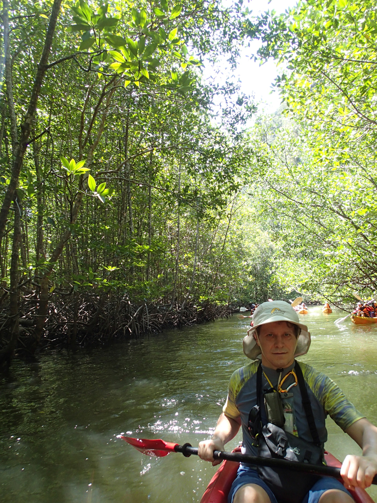 Поддавшись порыву, вечером в процессе неудержимого шопинга купили герморюкзак на 30 л, стоил он около 2000 бат. Обычно все ходят на каякинг с гермомешками через плечо, и такие мешки выдают во время экскурсий и в изобилии продают в магазинчиках Аонанга. Но Ран захотел, чтобы были нормальные лямки и чтобы туда все поместилось на двоих. Ну и еще с таким рюкзаком можно ходить под дождем в лес, бросать его в грязь, а потом достаточно тряпочкой протереть. Рюкзак жестко тестировали в бассейне — если утопить его и сесть сверху, то вода через скрутку немного просачивается. Но когда этот рюкзак захлестывают волны или сверху мочит дождь, то внутри сухо. На морских волнах мы его впоследствии тоже тестировали.