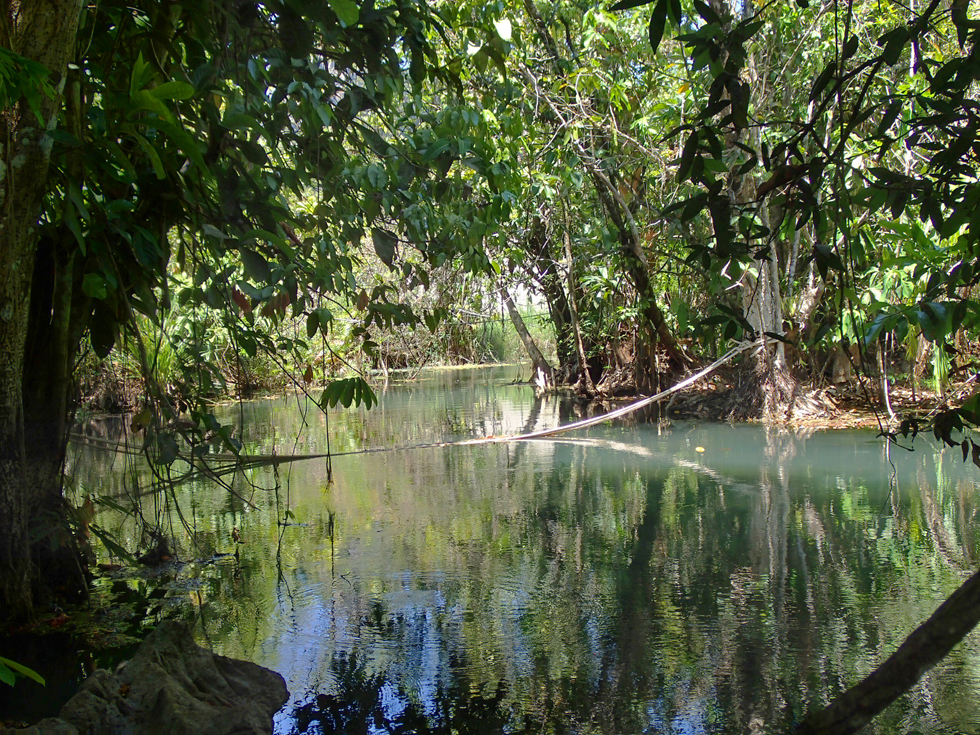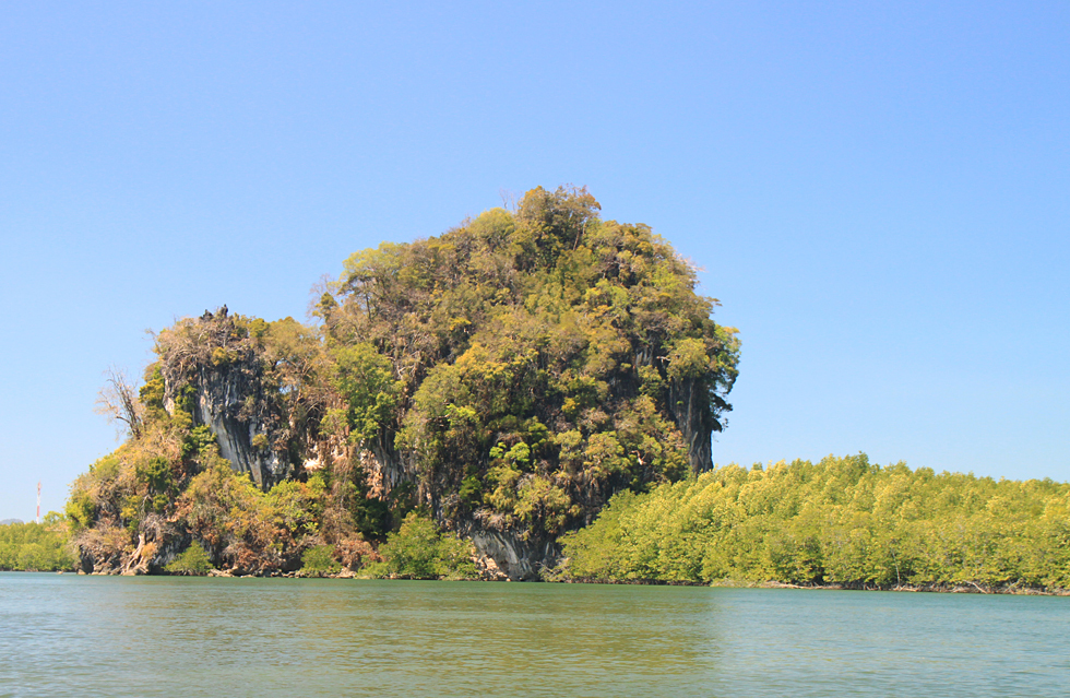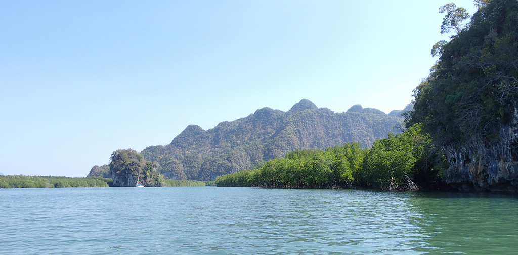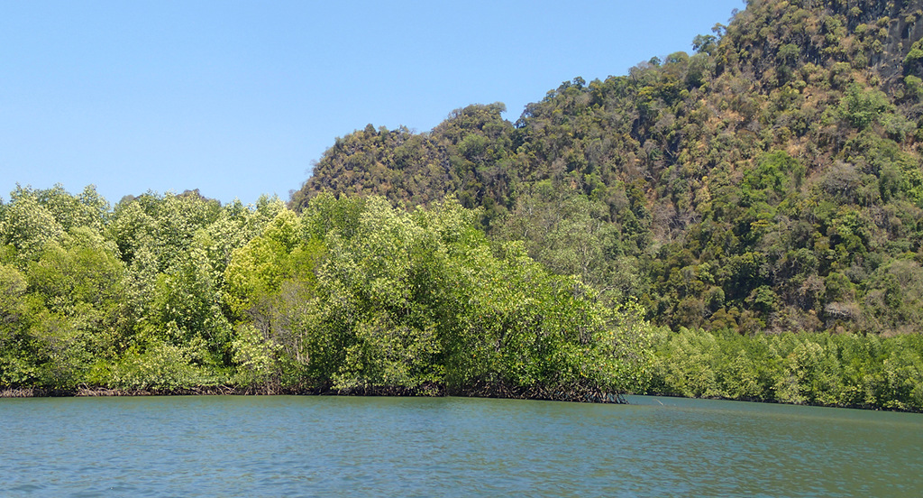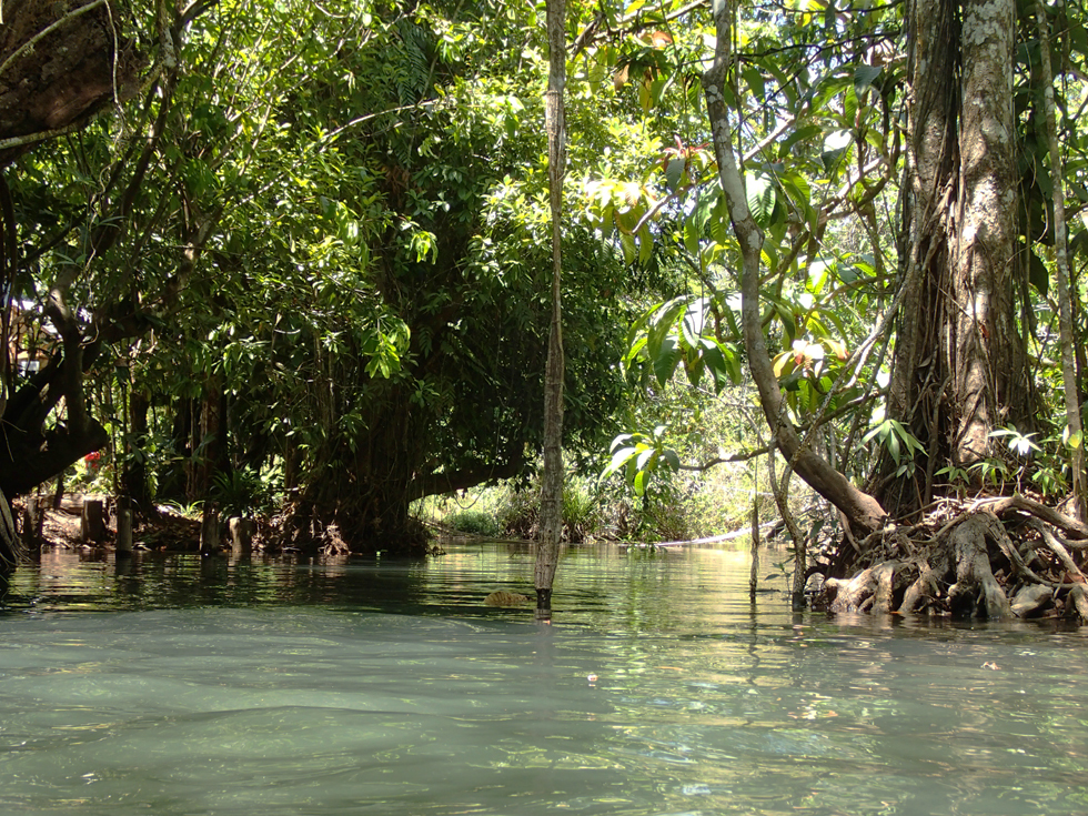В море впадает река, поросшая мангровыми деревьями. Она течет по узкому, извилистому и очень живописному ущелью.