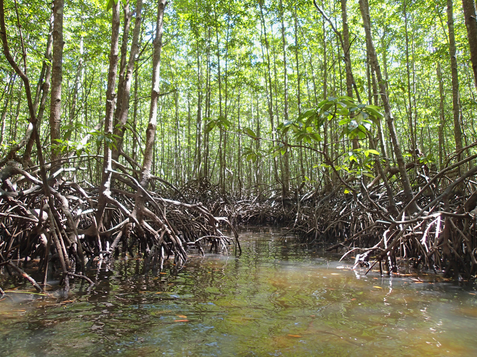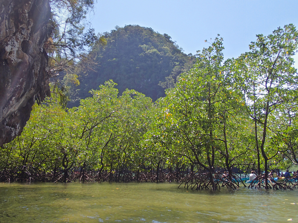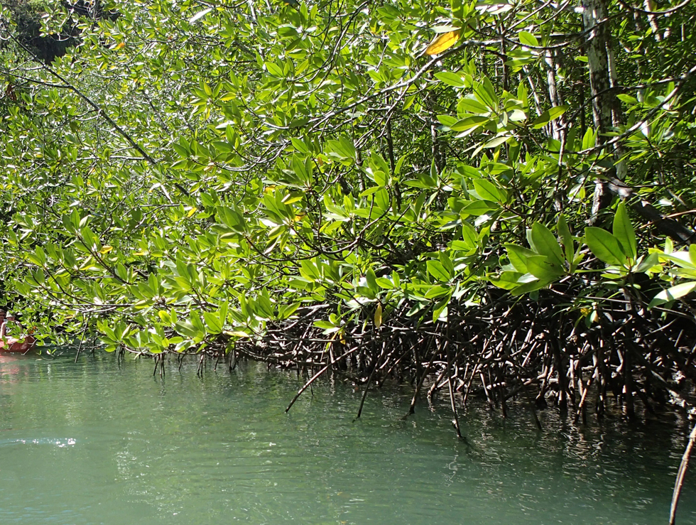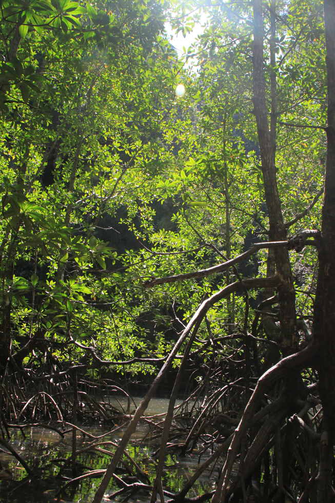 Корни мангров переплетаются, некоторые протоки весьма узкие.