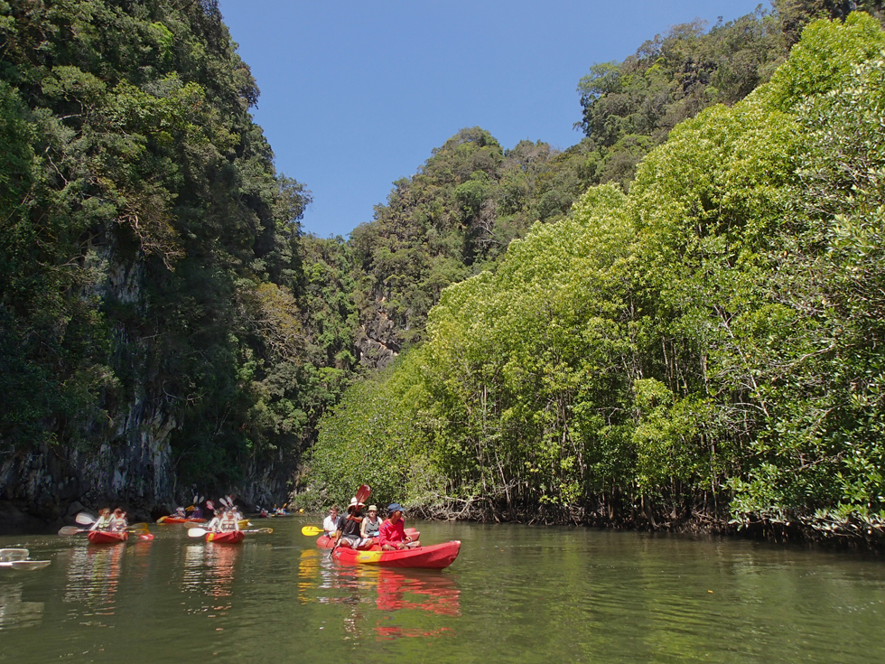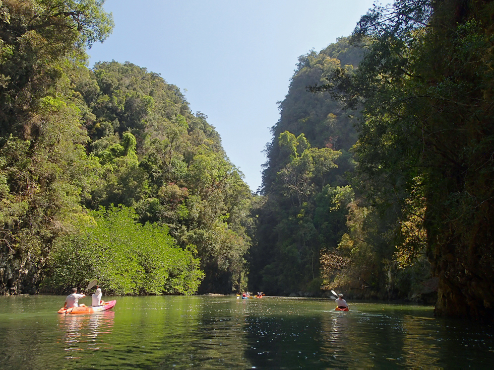 По окончании каякинга все помылись, переоделись, а после группу перетасовали: у кого была экскурсия на полдня, возвратились в Аонанг, а мы брали полный день и нас повезли обедать и купаться.