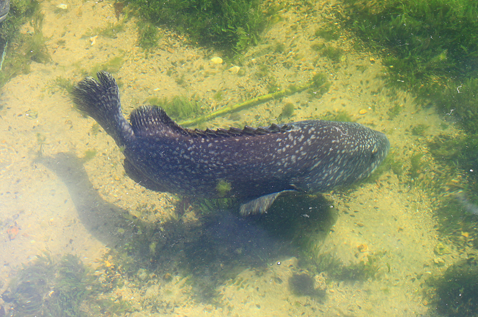 Каменный окунь, огромная зверюга до 1.5 метров длиной. Он несъедобен и очень внушителен.