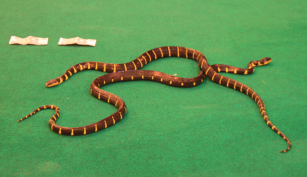 И зубы у этой кобры были на месте. Товарищ потом взял стаканчик и сцедил очередную порцию яда на глазах у изумленной публики. Змею несли по рядам, так что можно было вблизи посмотреть и даже потрогать ее.