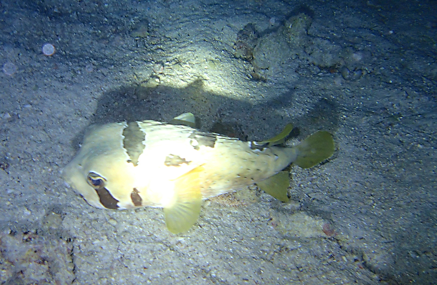 Рыба-коробочка в ночи.