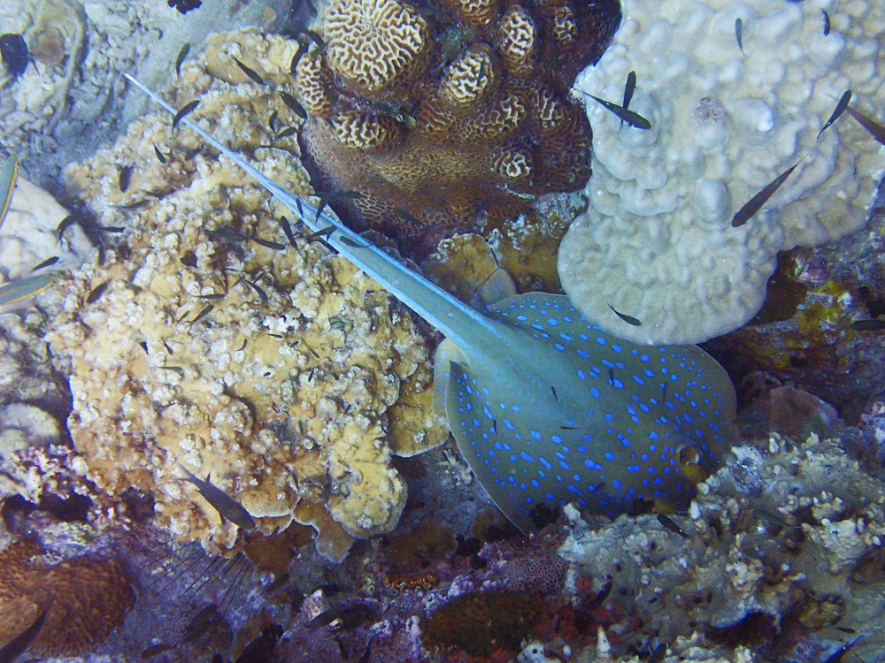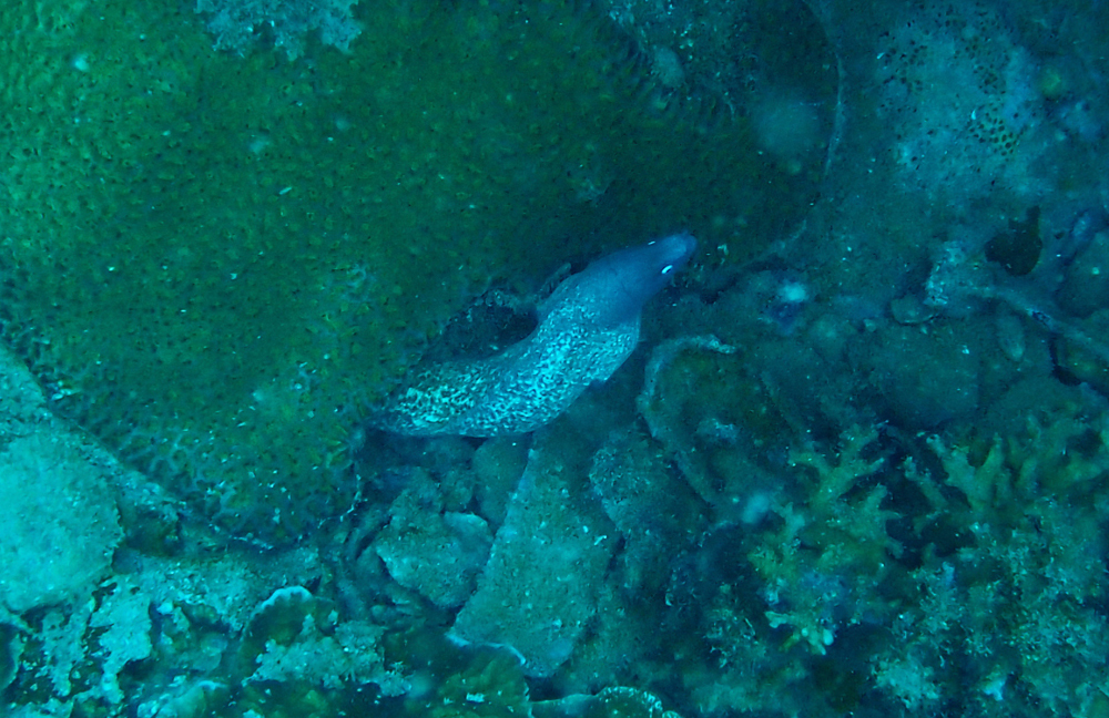 Видели скатов и мурен. Мурены тут небольшие.