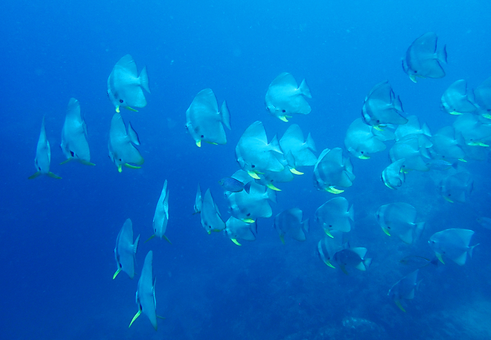 Вокруг нас плавали косяки рыб-нетопырей. Им ничего тренировать не надо :-)