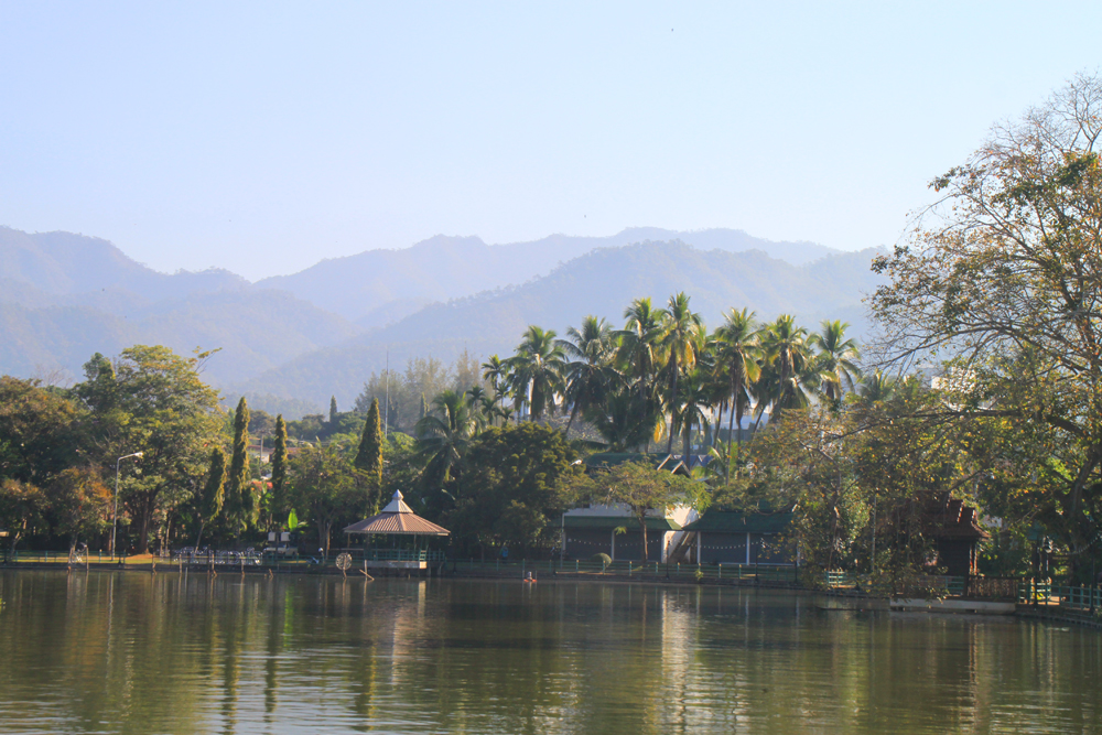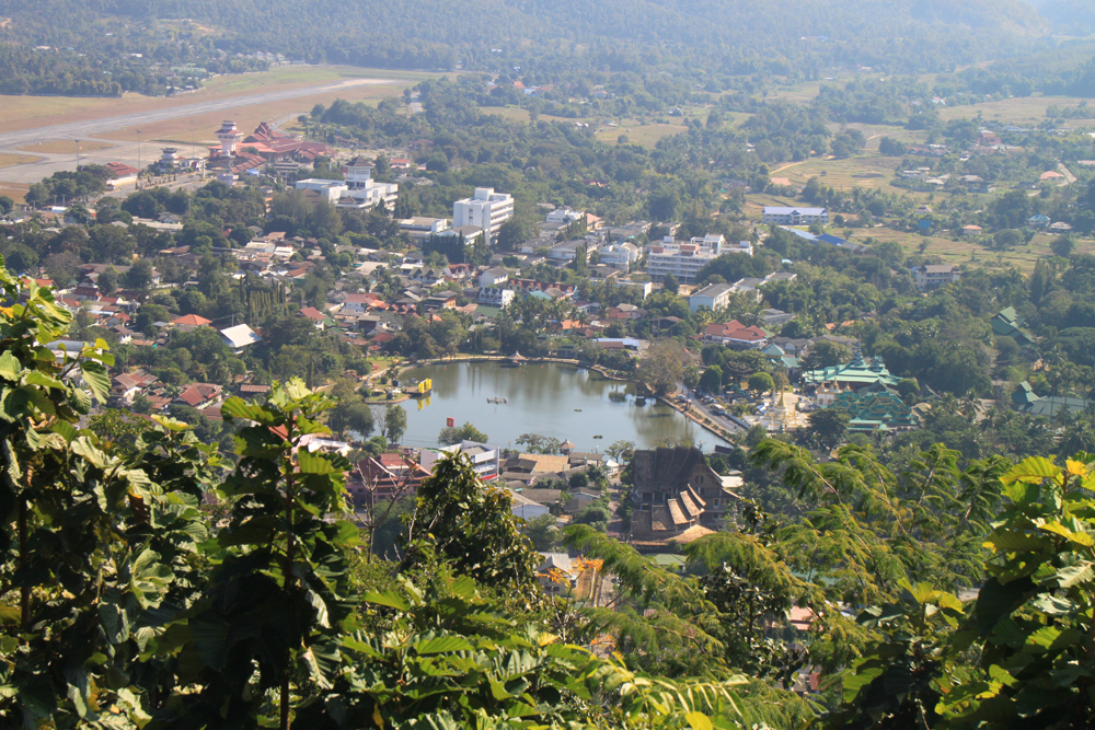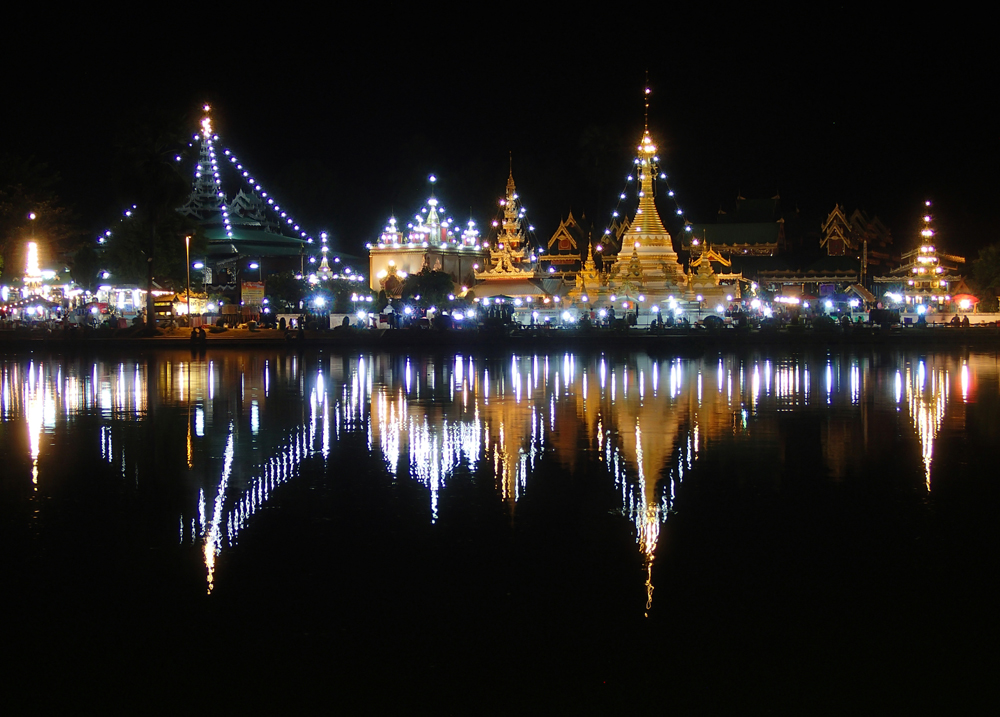 Центр города — это круглое озеро, основная достопримечательность — храмовый комплекс в шанском стиле.