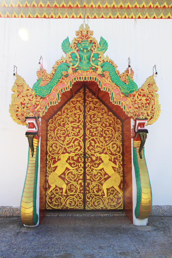 Возле них запускают небесные фонарики и кратонги. Вообще-то кратонг — это лодочка из листьев, со свечками и благовониями, которая пускается по реке. Но тут в храме был специальный фонтанчик с круговым течением, а лодочки предлагали пускать деревянные.