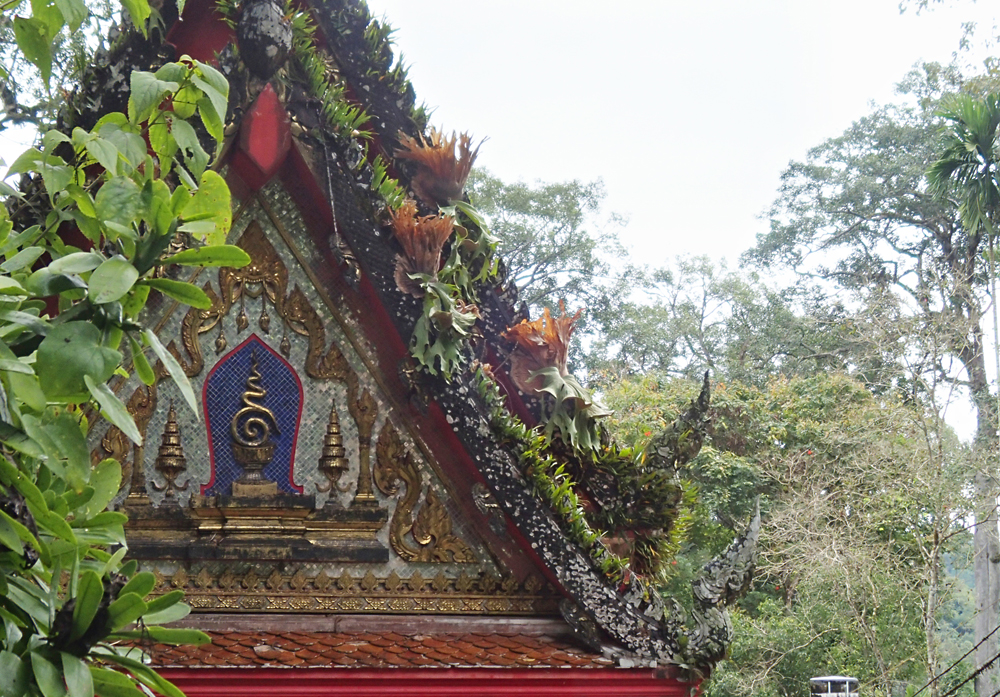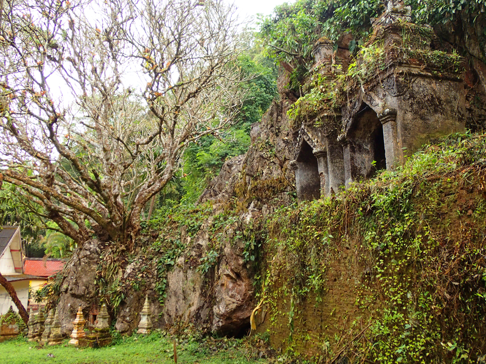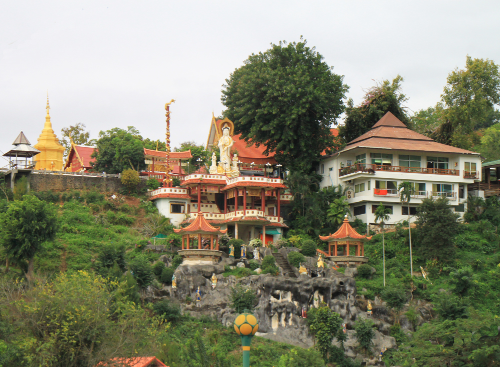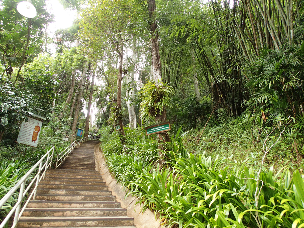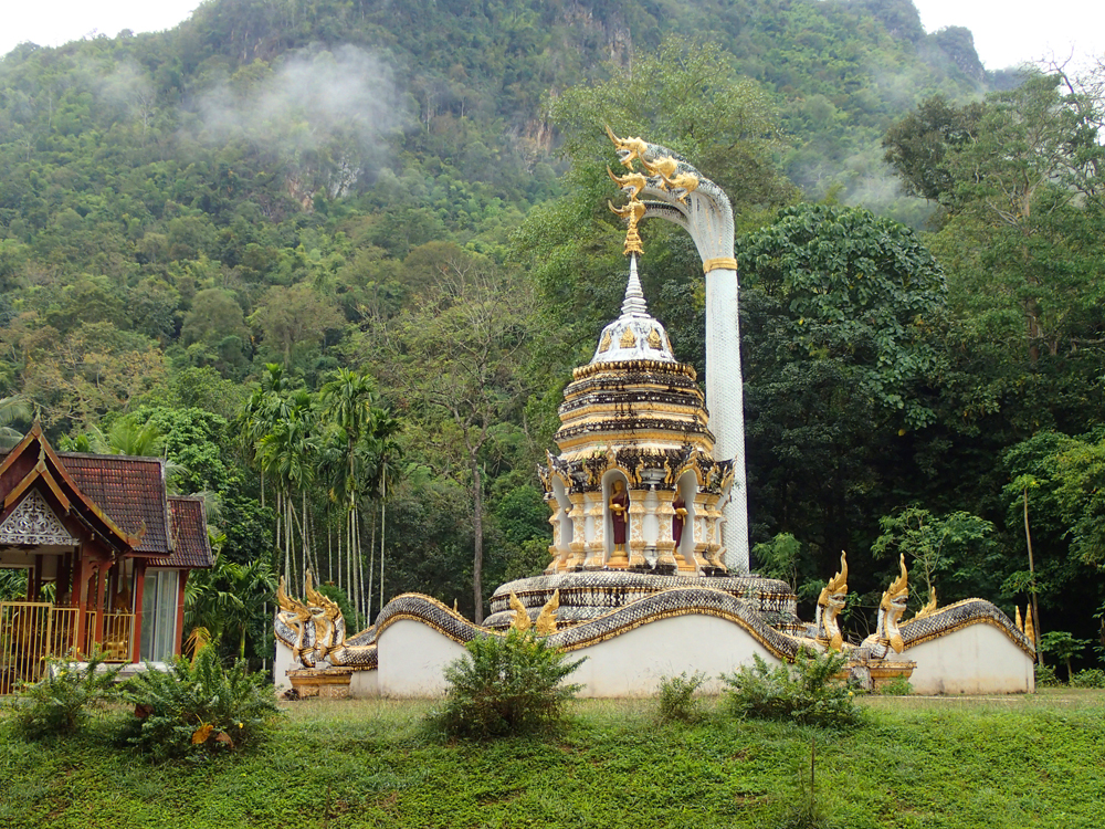 Вернувшись к машине, мы проехали пару километров до храма Tham Pha Plong. В каком-то смысле это тоже пещерный храм (tham — пещера по-тайски), а еще монастырь. К храму ведут 500 ступенек.
