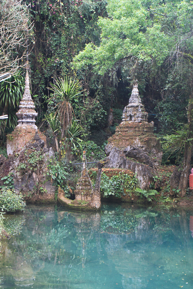 Тут мы остановились лишь на одну ночь. Утром приготовили себе завтрак, распрощались с мокрым зеленым садом и пошли смотреть пещеру Tham Chiang Dao.