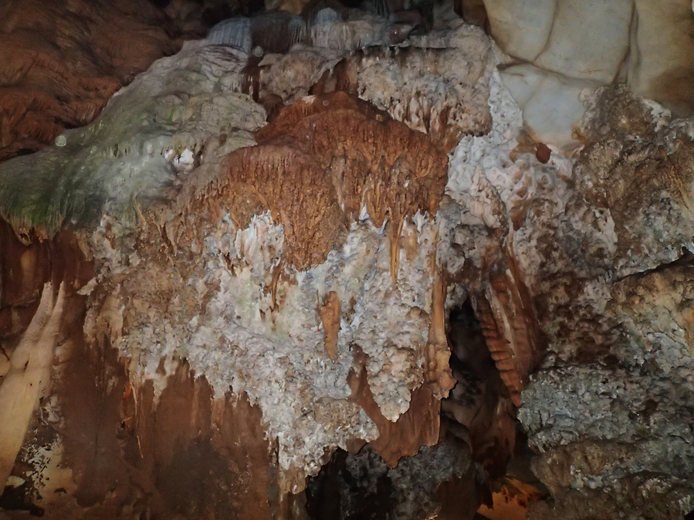 В ответвлениях основной пещеры нарисованы предупреждающие знаки: без гида не ходить, штраф! И стоят тетеньки-гиды, еще каких-то денег хотят. Мы не пошли: нам хватило подсвеченной части, и вообще тут не было таких огромных удивительных пространств, как в Тхамлод.