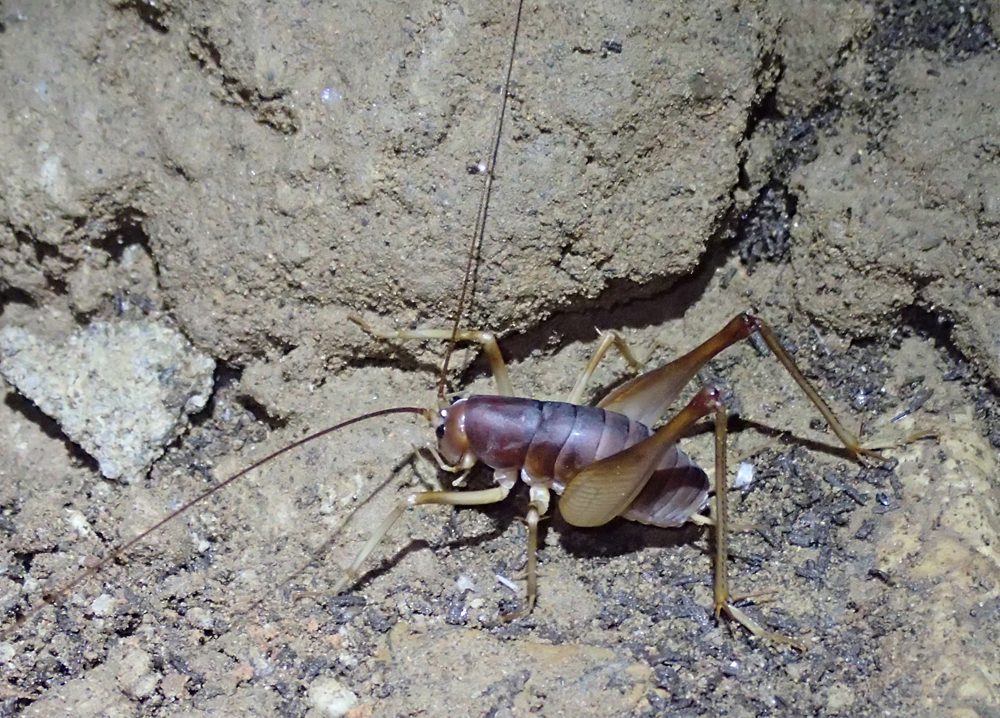 Рану в конце стало душно и вообще он к пещерам относится прохладно, (если там нет светлячков :-). А тут их не было, только пещерный кузнечик.