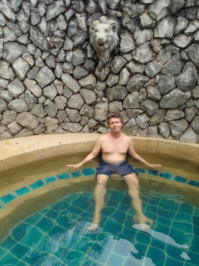 Мы сперва залезли в один бассейн, изобразив из себя непонятливых иностранцев, но пара тетенек пришли и вежливо, но твердо проводили Рана в мужской бассейн. Надо ли говорить, что одеты они были не в купальники, а в платья? Но все равно сказали, что они стесняются, поэтому давайте-ка отдельно. Девушка помладше неплохо говорила по-английски, и я расспрашивала ее о взгляде местных жителей на горячие источники. Так вот: варить яйца в источниках — это просто первое развлечение, и еще они в источнике становятся гораздо вкуснее. Понять это нам, приезжим, крайне трудно: у тайцев такая вкусная кухня, почему они готовы корзинами есть эти вареные яйца? В исландском хайленде сваришь что-нибудь в источнике, и уже счастлив. А тут вокруг горы дешевой и разнообразной еды :-)