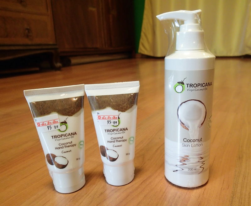 Кокосовая косметика по уходу, крем для рук и лосьон для тела. Увы, не нашла себе крема для лица, ну просто заколдованный он какой-то. Перерыли весь Бангкок, съездили ради него в два торговых центра... ну нет. А я его так люблю. У «Тропиканы» просто нет крема для лица. А еще оказалось, что Nature republic — это корейская дорогая косметическая фирма, которая не имеет кокосовой линии. То есть на юге продают подделку под корейцев, которой нет в фирменном бангкокском магазине! Дайте две подделки.