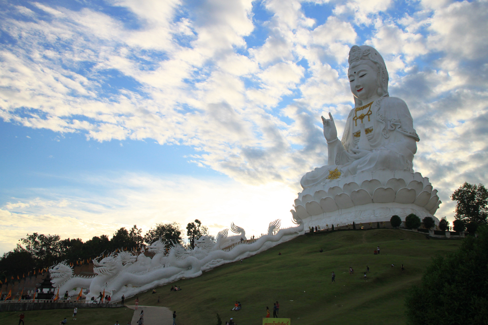 Храм новый, помимо эффектной пагоды здесь есть 25-метровая статуя Гуаньинь.