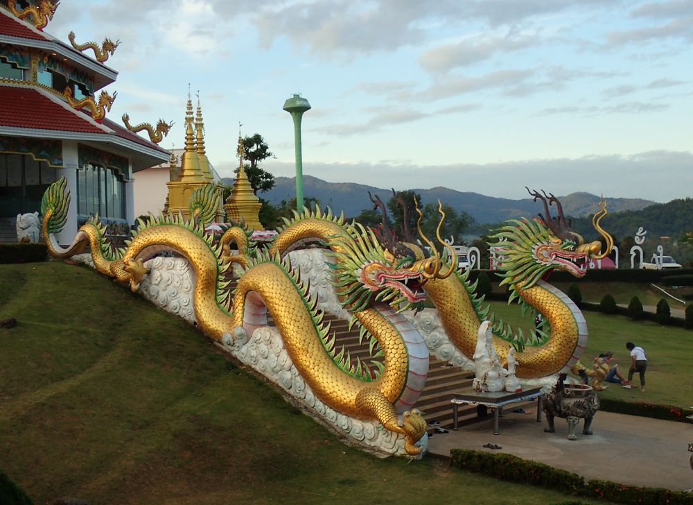 Этот храмовый комплекс в пригороде Чианграя можно найти по двум названиям. Скорее всего, это результат какой-то размноженной в интернете ошибки. На карте он Wat Hyua Plakang, а в найденных описаниях Wat Huay Plakang. Истину может установить только читающий по-тайски. Учебник тайского мне вчера привезли, так что в следующий раз мы будем ого-го (может быть :-)