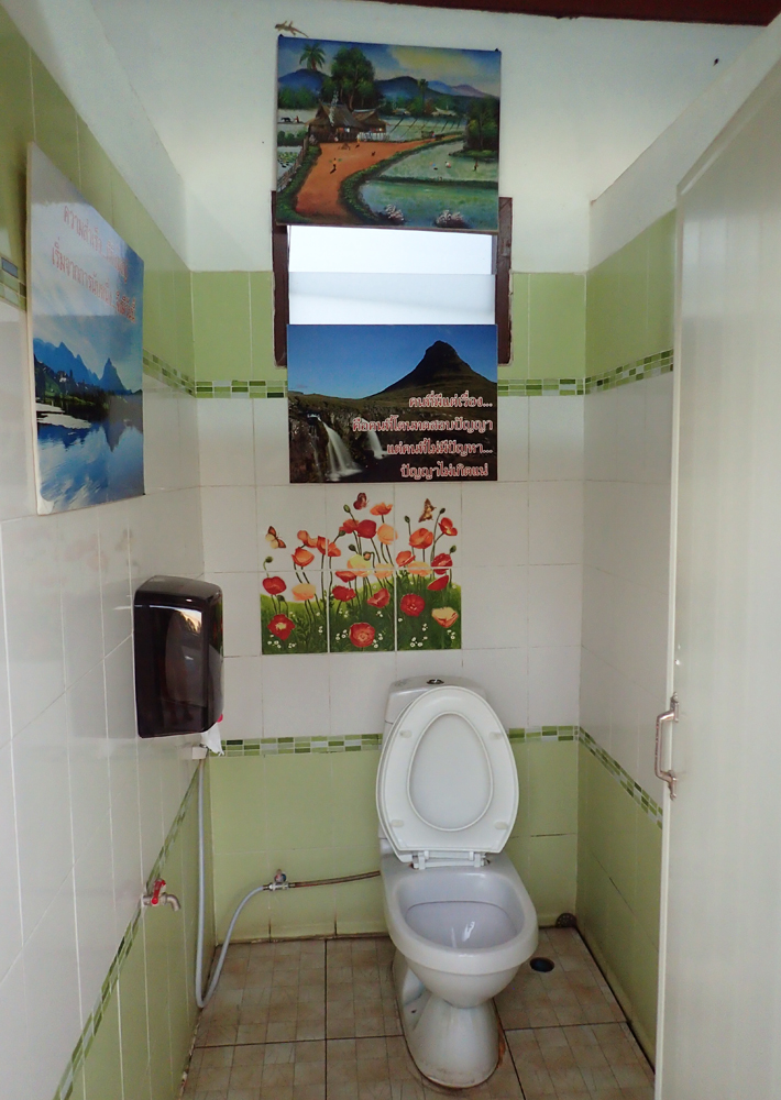 Ну а тут мы просто не смогли пройти мимо. Где Чианграй, а где Киркьюфетль, какими судьбами изображение исландской горы сюда попало? И почему оно попало в туалет?? Загадка тайской души :-)