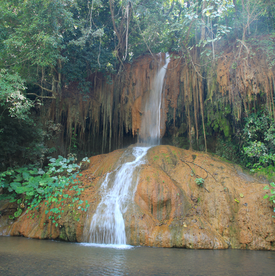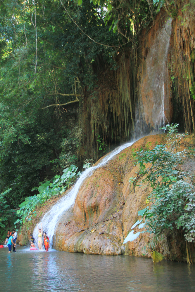 Вода в водопаде Пхусанг +30–32 градуса, вытекает он из теплого источника сверху, где температура +35–36.