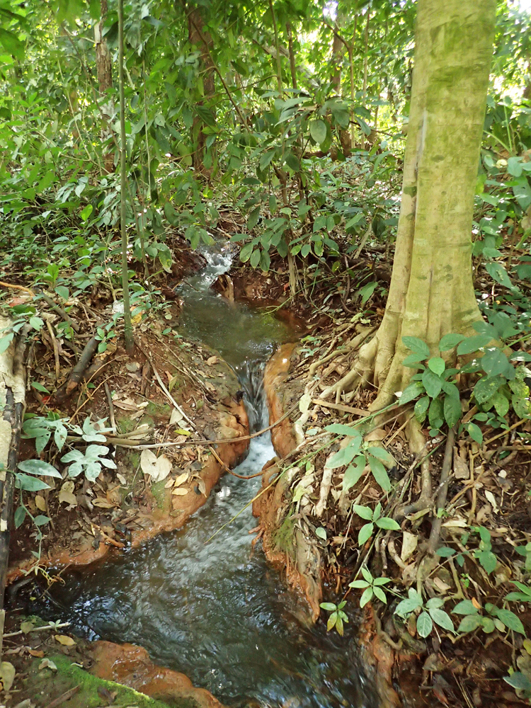 Мы исследовали, нет ли в нем купальных мест. Не нашли ничего подходящего: ручей узковат и берега глинистые.