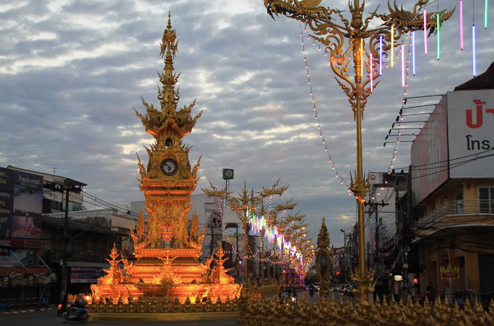Сперва мое внимание привлек храм. Называет он Wat Ming Meuang, находится рядом с золотыми часами.
