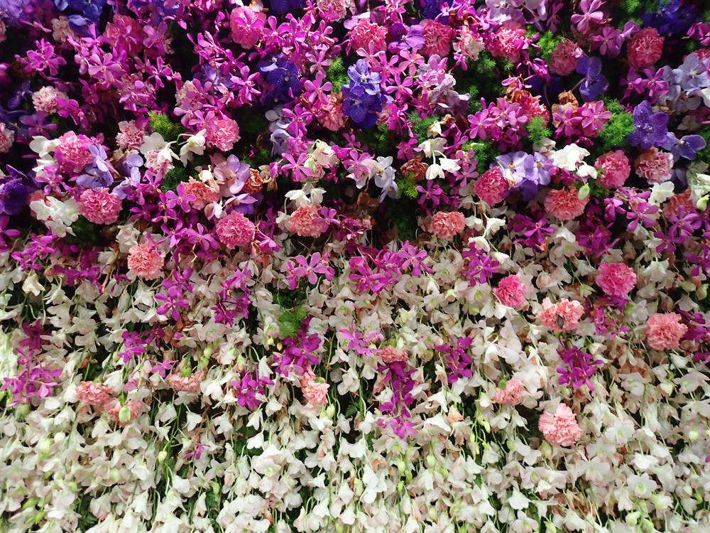 Туннель из цветов. Все орхидеи при этом живые и в горшках, только гвоздики срезанные.