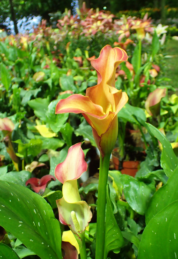 А это, наверное, цветная разновидность каллы. Там еще и черные были.