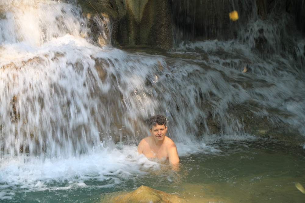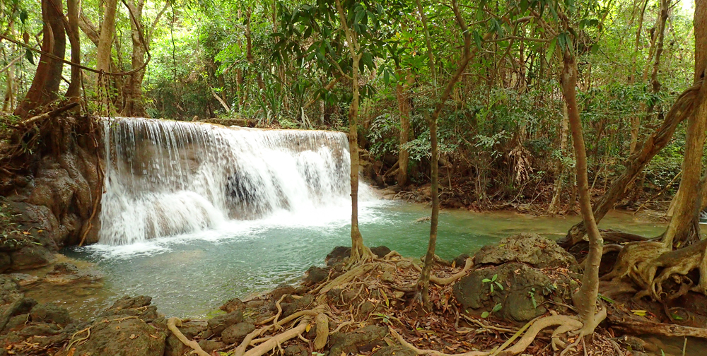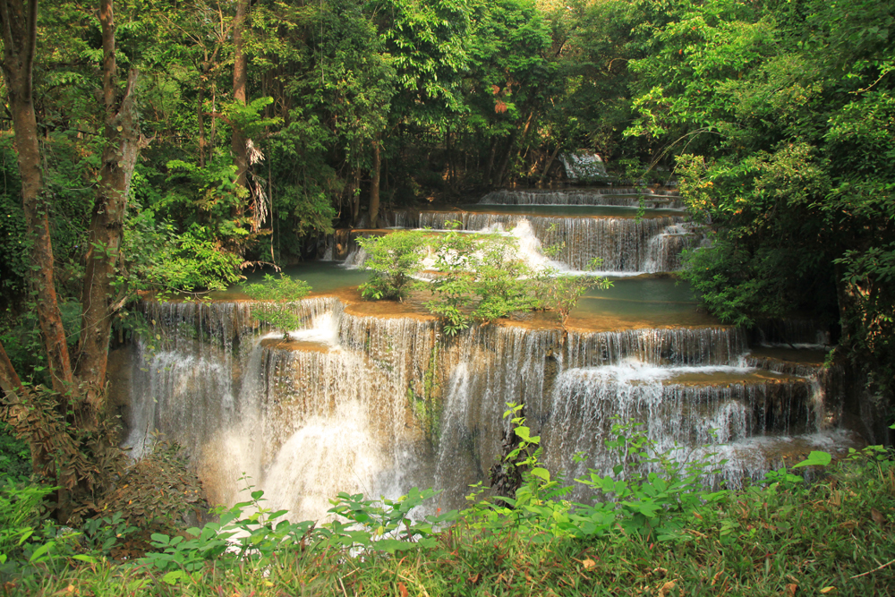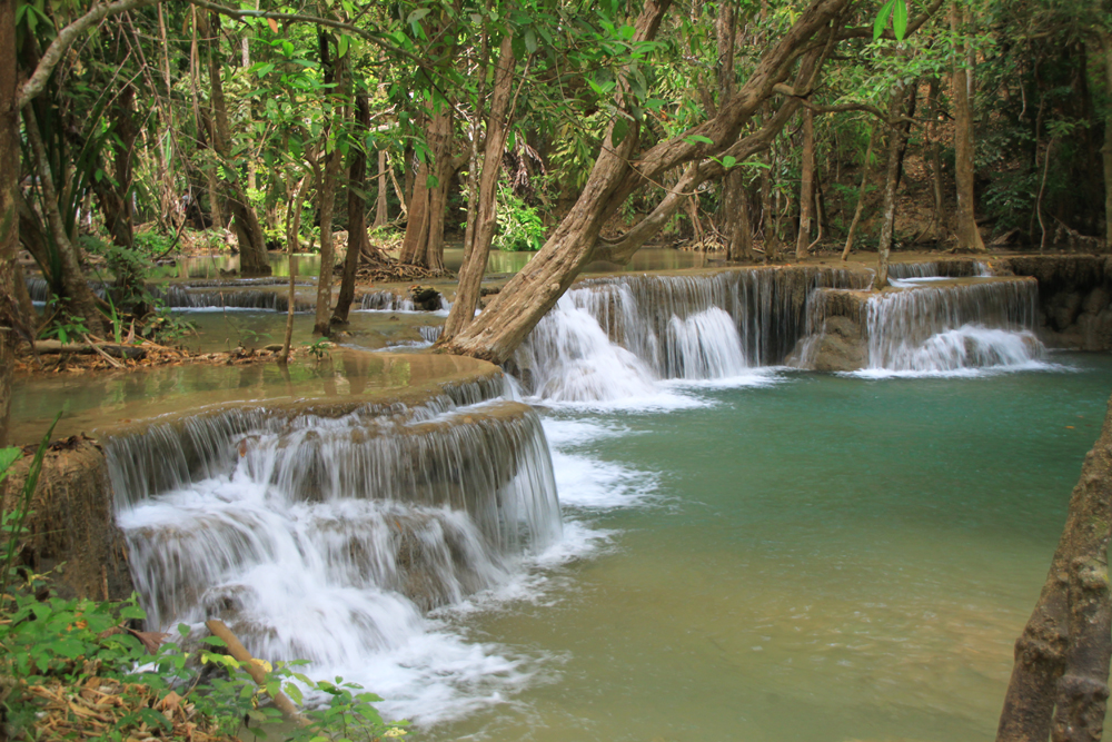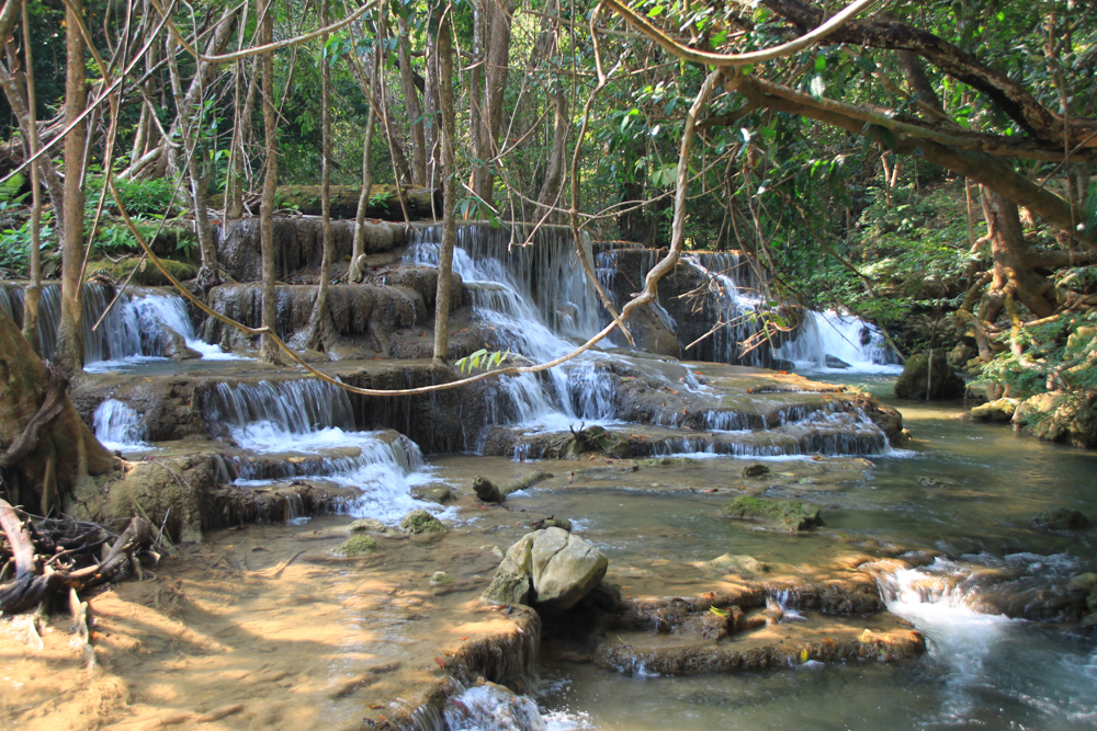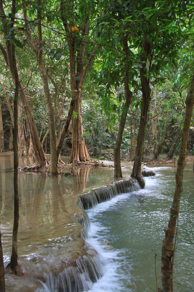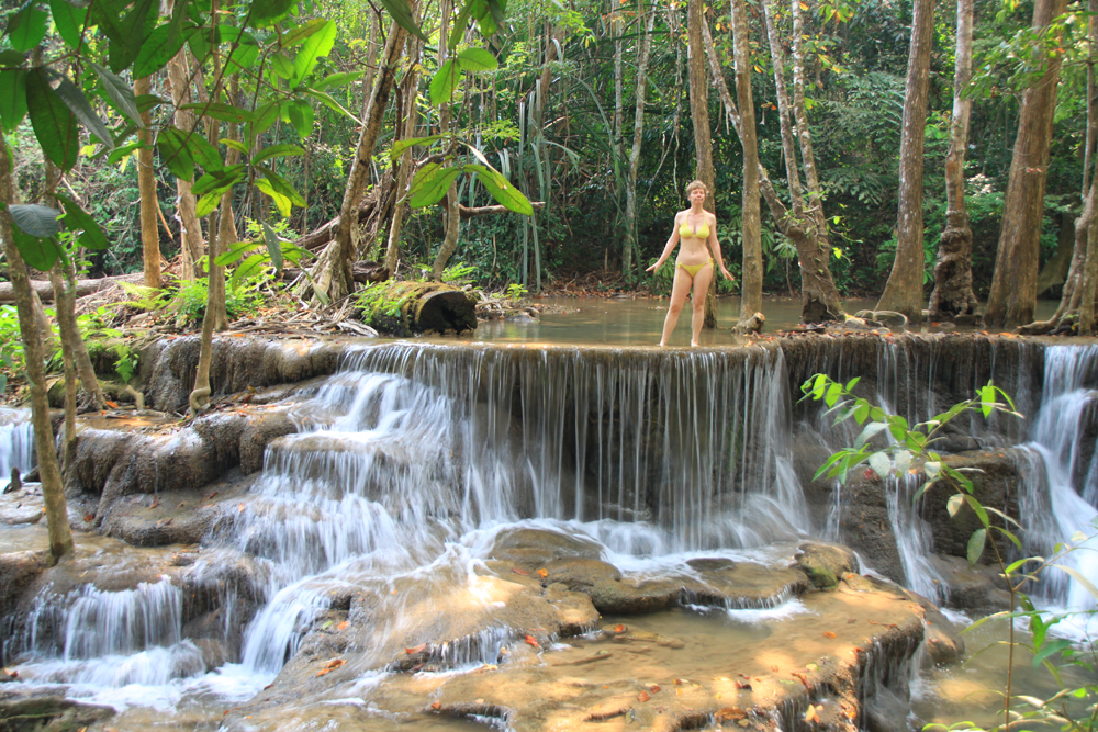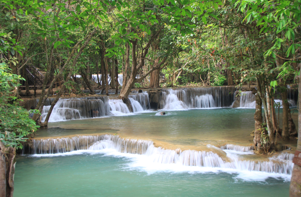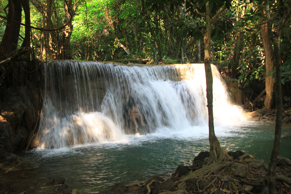 А меж тем Хуай Мэкамин красивее Эравана. Те же семь уровней, можно купаться, к тому же тут проложены нормальные дорожки вдоль всех каскадов, так что водопад доступен слабоходящим и людям с детьми. В отличие от Эравана, где к верхним каскадам приходится карабкаться по воде, мокрым корням и камням.